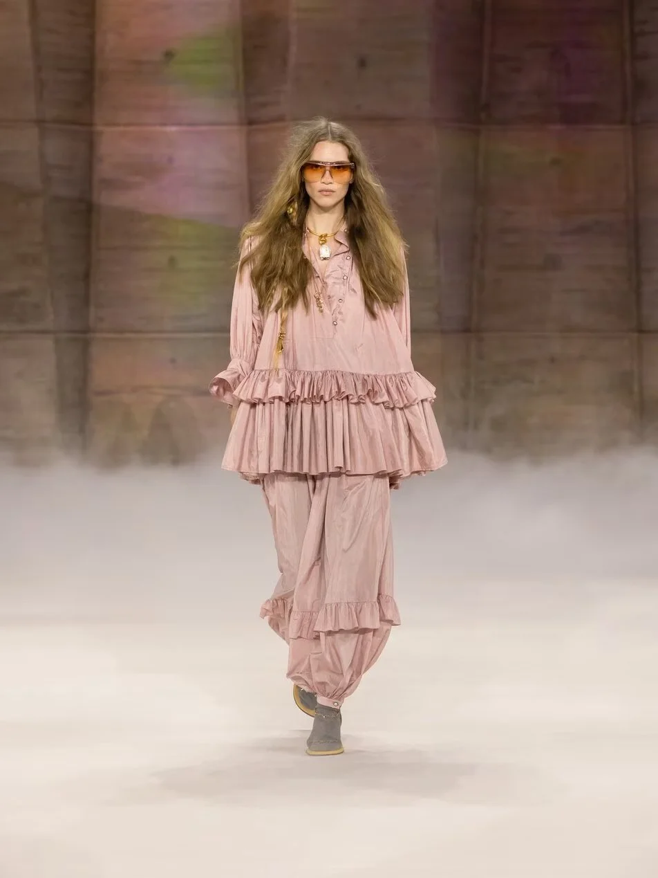 Comme Marie Gaguech, on peut assumer la version romantique, et même pousser le jeu du style jusqu’au bout en jouant la carte de l’ensemble comme chez Chloé.